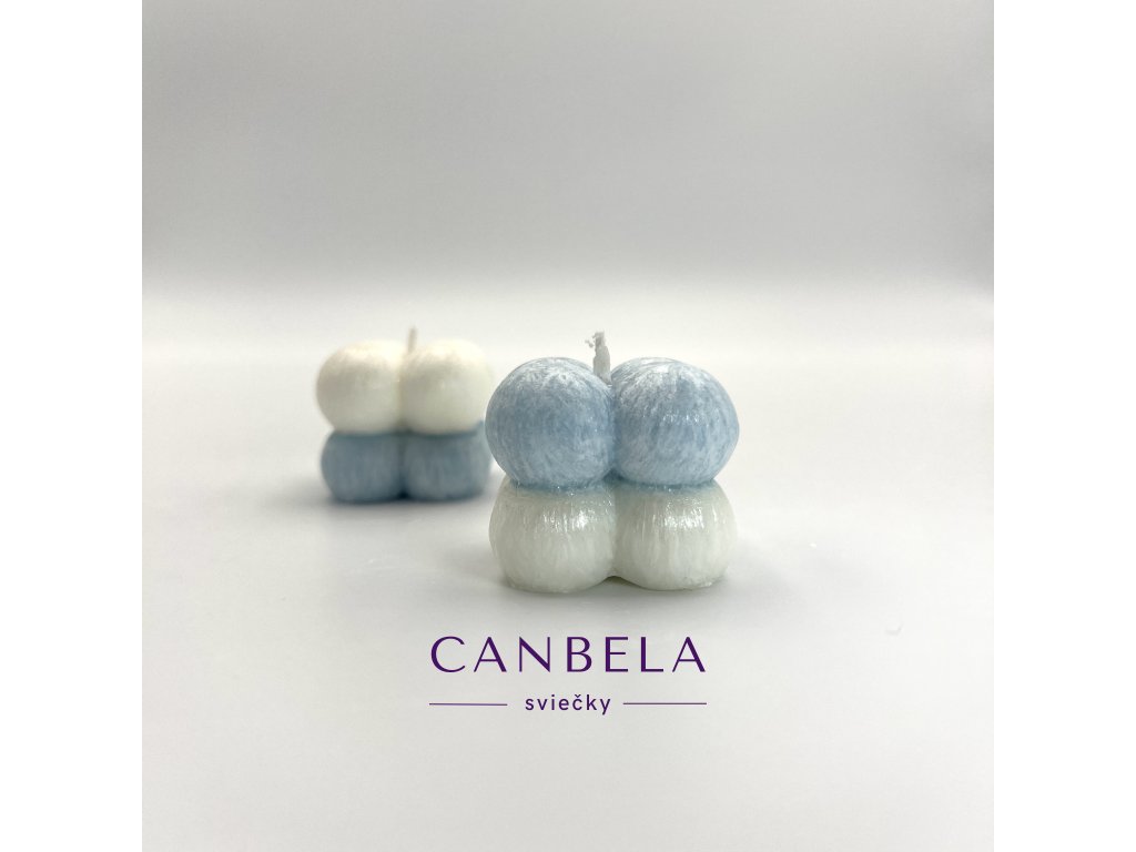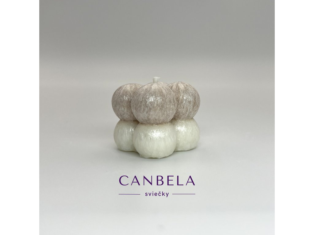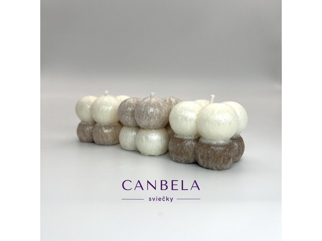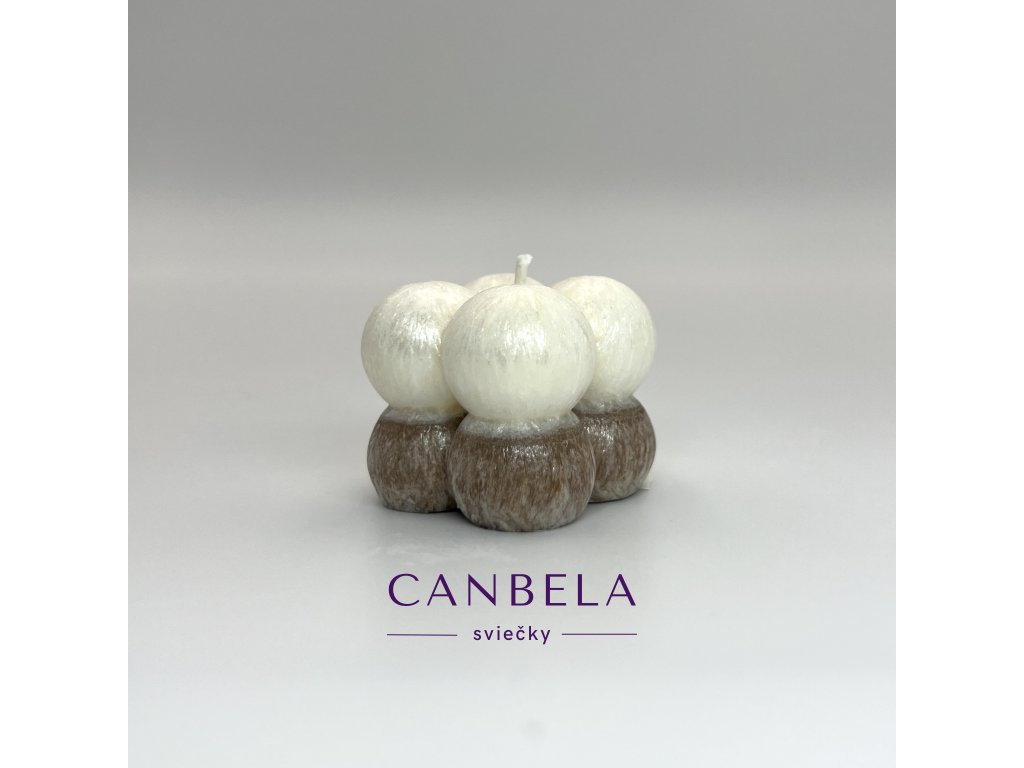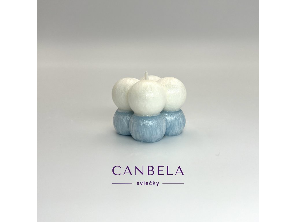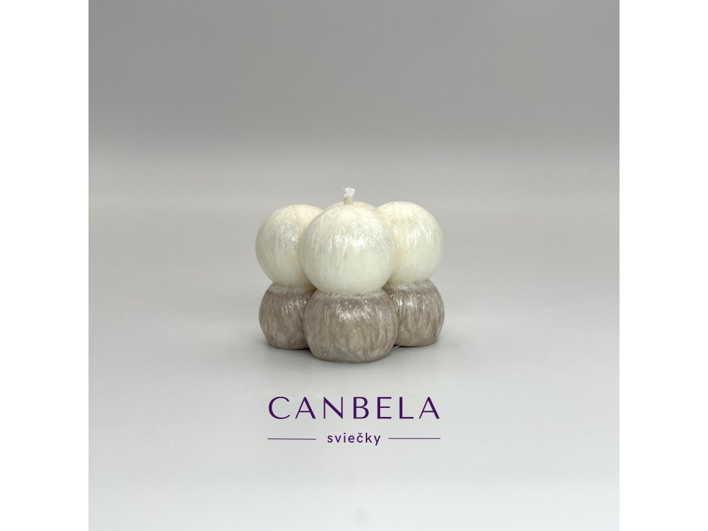 Dizajnová sviečka v tvare kocky ktorú tvoria guľky.
