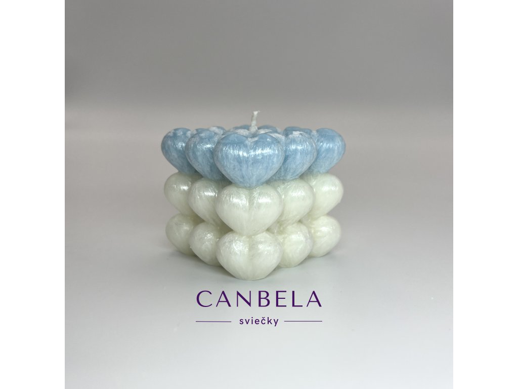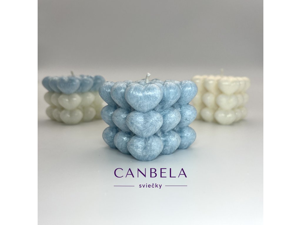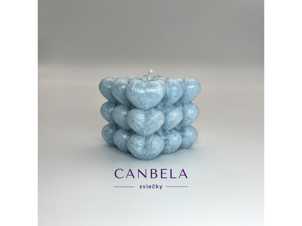 Dizajnová sviečka v tvare kocky ktorú tvoria srdiečka